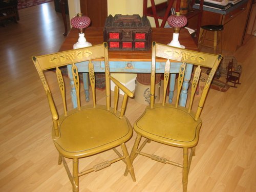 Early Set of Stensil Decorated Arrow Back Chairs