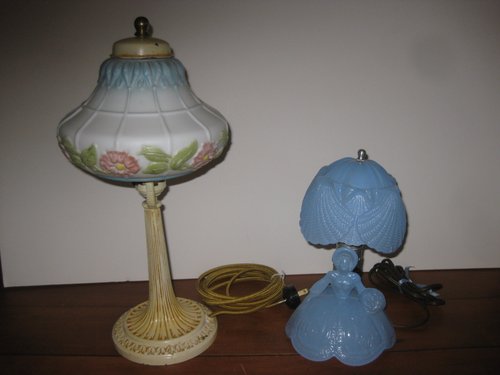 Blue Satin Glass Bonnet Girl Lamp