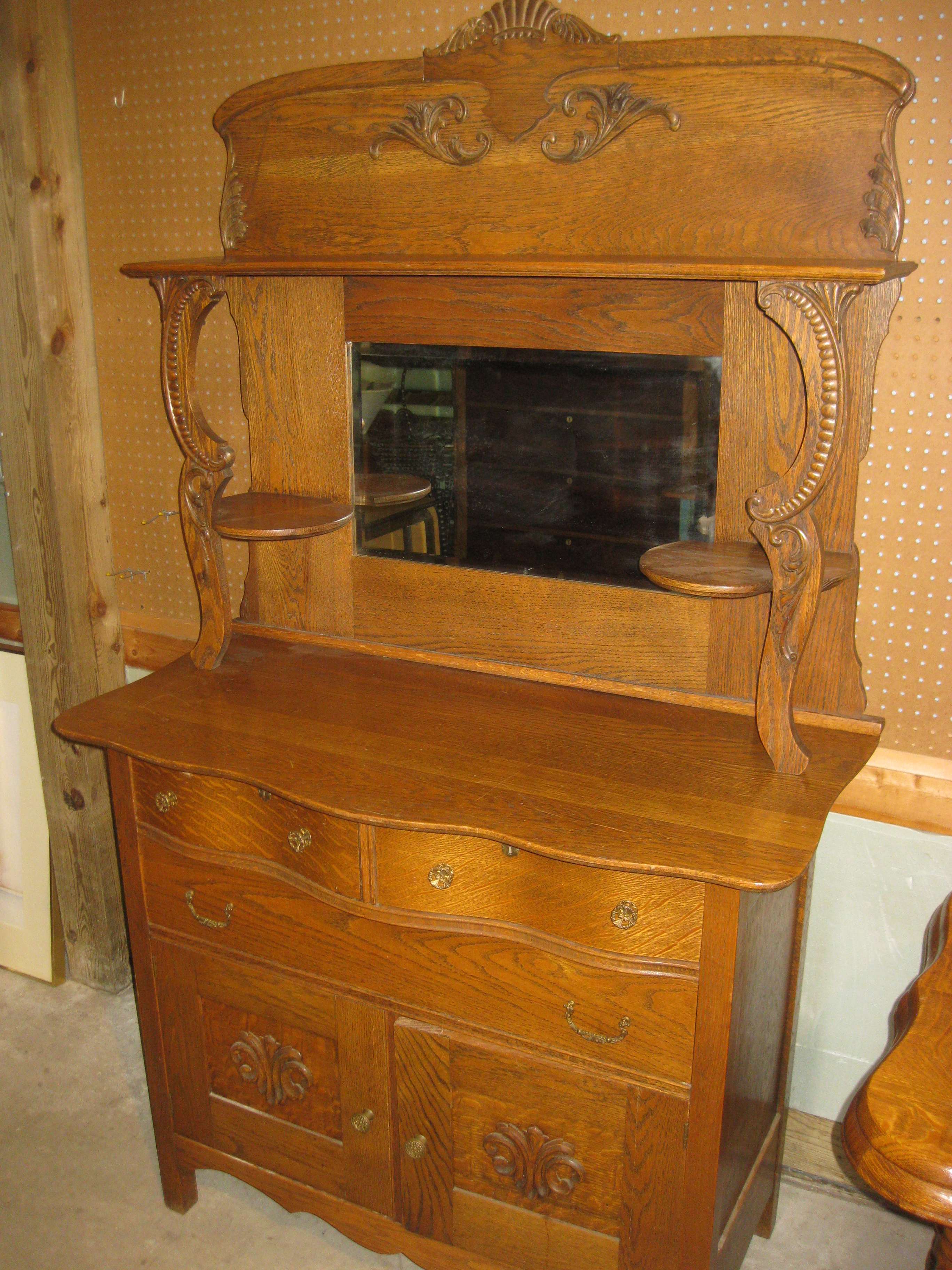 Fancy Oak Mirrored Side Board